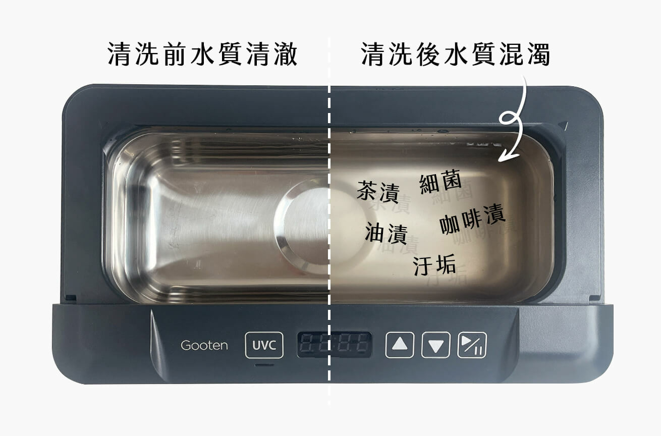 自訂清潔模式與清洗時間,有效深入物品細節去除髒汙,如茶垢、油漬、咖啡漬、細菌、泛黃汙垢等