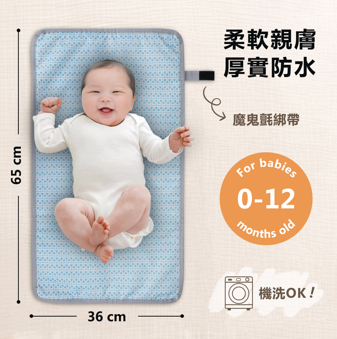 專為外出換尿布設計,輕薄可摺疊,收納方便不佔空間。表層柔軟親膚,防水材質有效隔絕滲漏,保持環境乾爽清潔。無論在家、外出或旅行,都能讓寶寶隨時享有乾淨舒適的更換環境,爸媽換尿布更安心便利。
