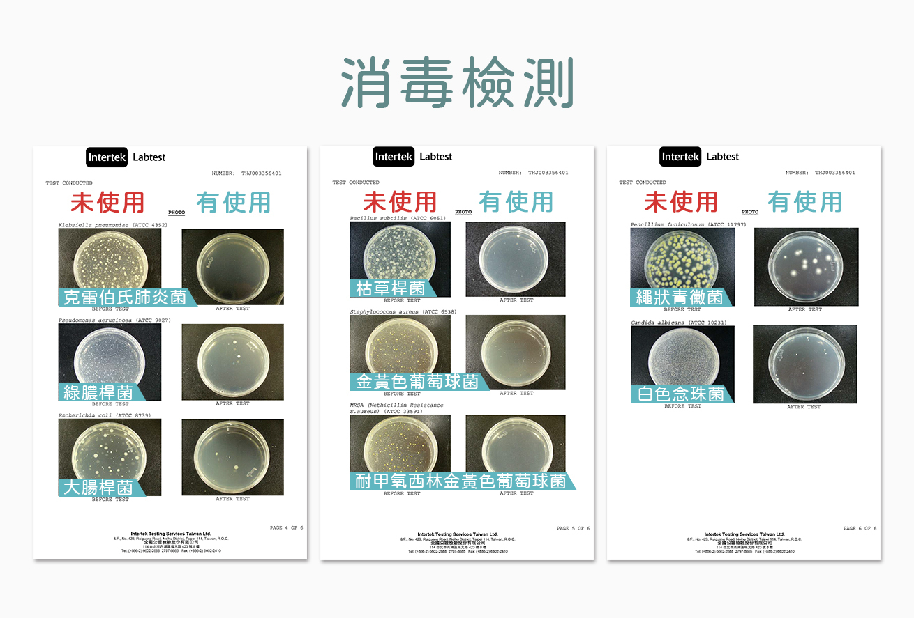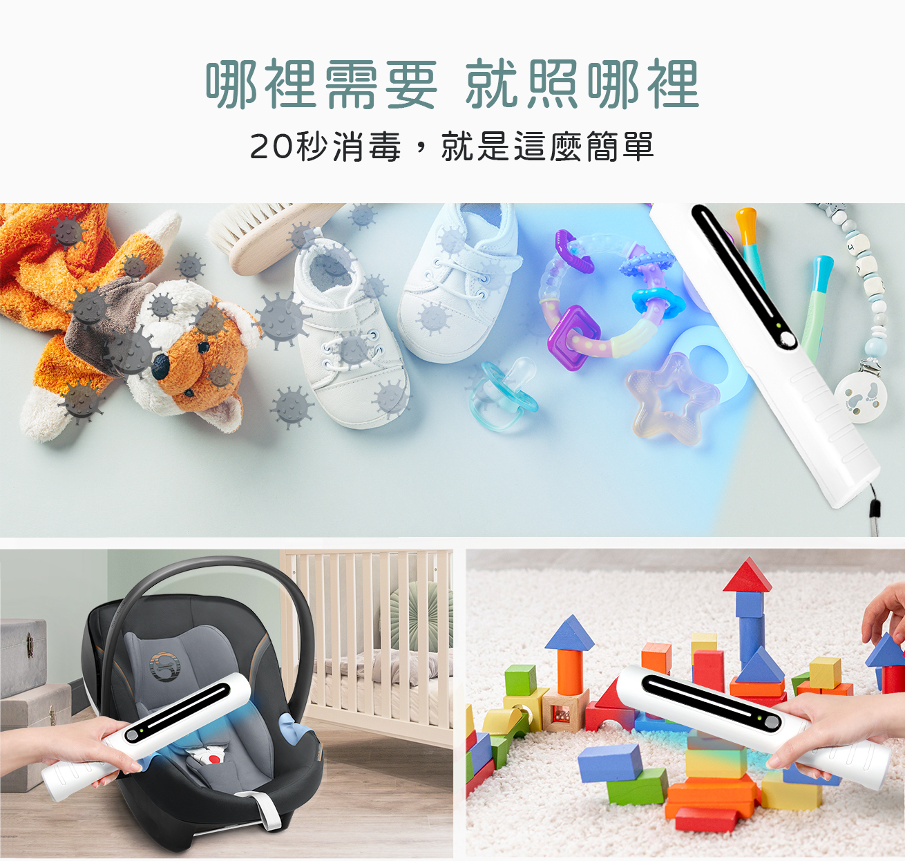 • 完美消毒手機、iPod、鍵盤、筆記型電腦、玩具、牙刷、遙控器、門把手、馬桶蓋、飯店、衣櫃、廁所、嬰兒車、嬰兒床和寵物區域