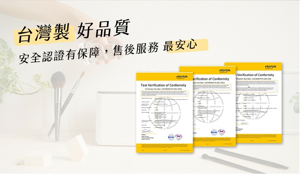 通過 EMC、FCC、LVD 等多項認證,使用最安心,台灣生產、製造、銷售,讓你需要服務時永遠找的到人